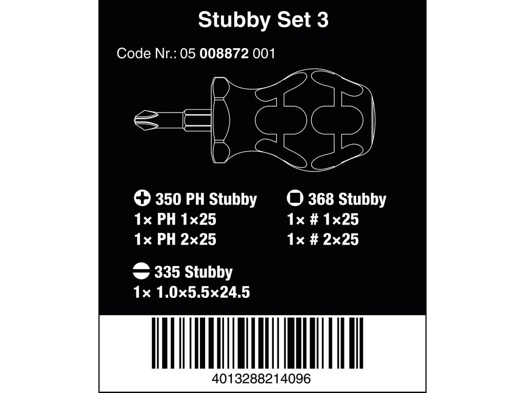 Wera 008872 Držiaky bitov a skrutkovačov Stubby Set 3 Sada 5 kusov