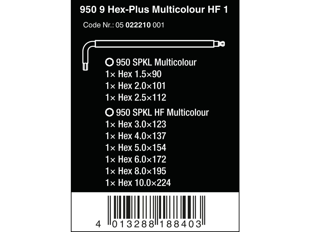 Wera 022210 Wera 950/9 Hex-Plus Multicolour HF 1 Sada šesťhranných kľúčov s držiakom Fu