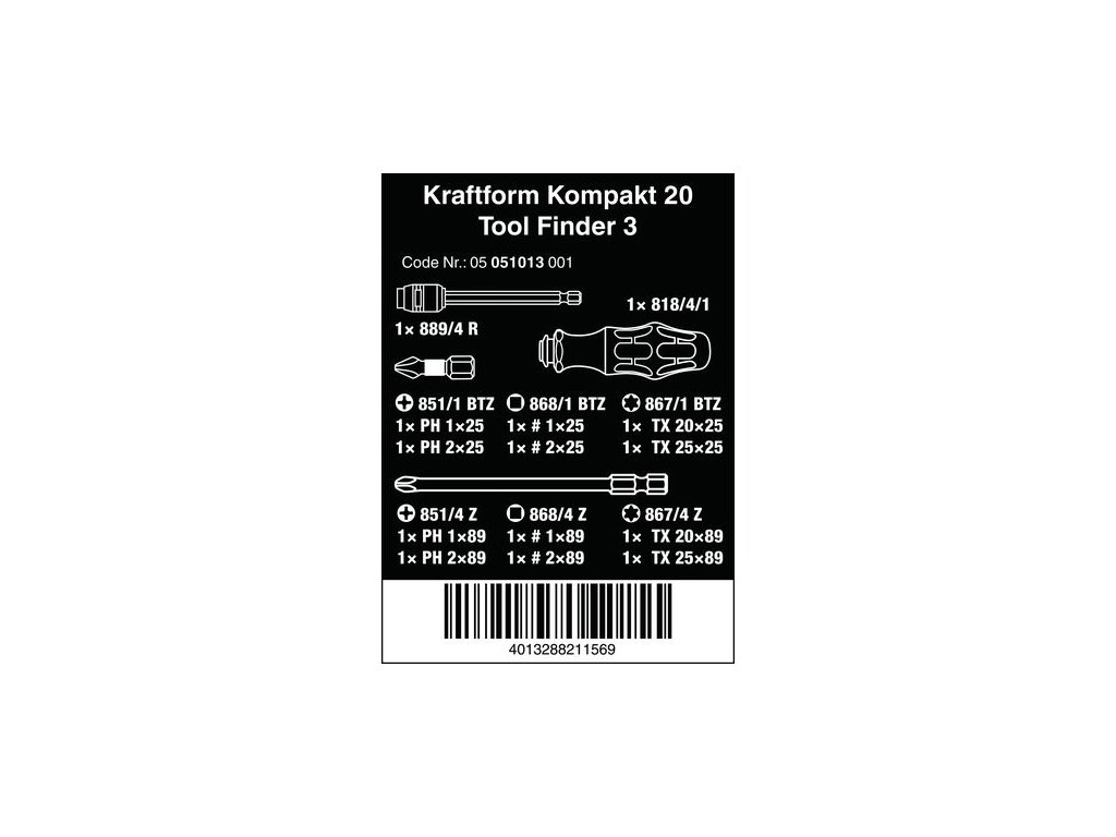 Wera 051013 Skrutkovacie nože Kraftform Kompakt 20 Tool Finder 3 s taškou (sada 13 dielov)