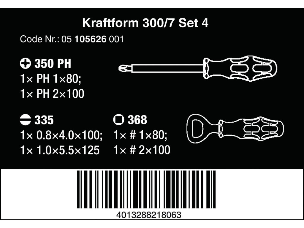 Wera 105626 Skrutkovače Kraftform Plus - Séria 300 Typ 300/7 Sada 4 (sada 7 kusov)