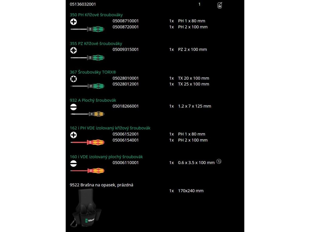 Wera 136032 Pásová taška 9620 s náradím. Sada 1 (sada 10 kusov)