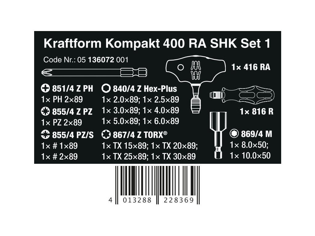 Wera 136072 Kraftform Kompakt 400 RA SHK Set 1 (sada 19 dielov)