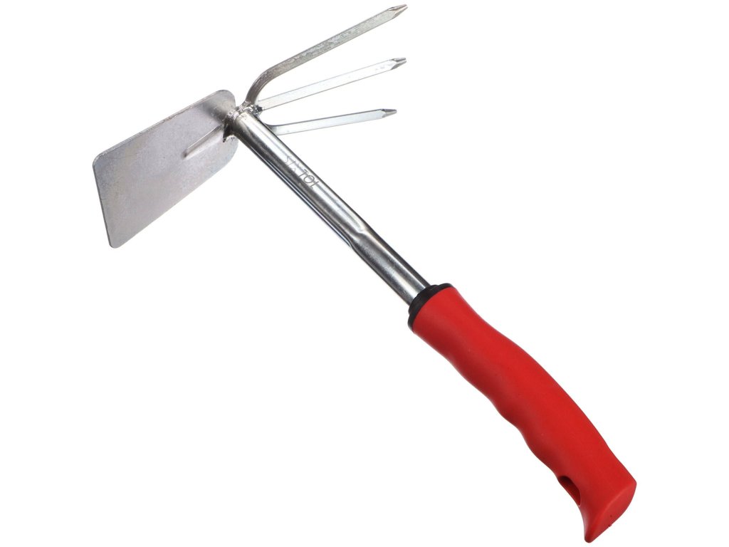 Ocelová záhradná motyčka s kultivátorom, celková dĺžka 290 mm, červená násada - SIXTOL SX6021