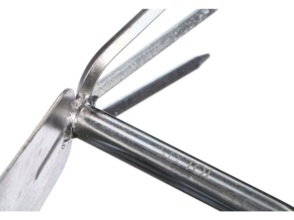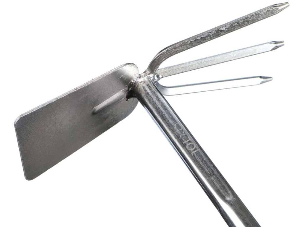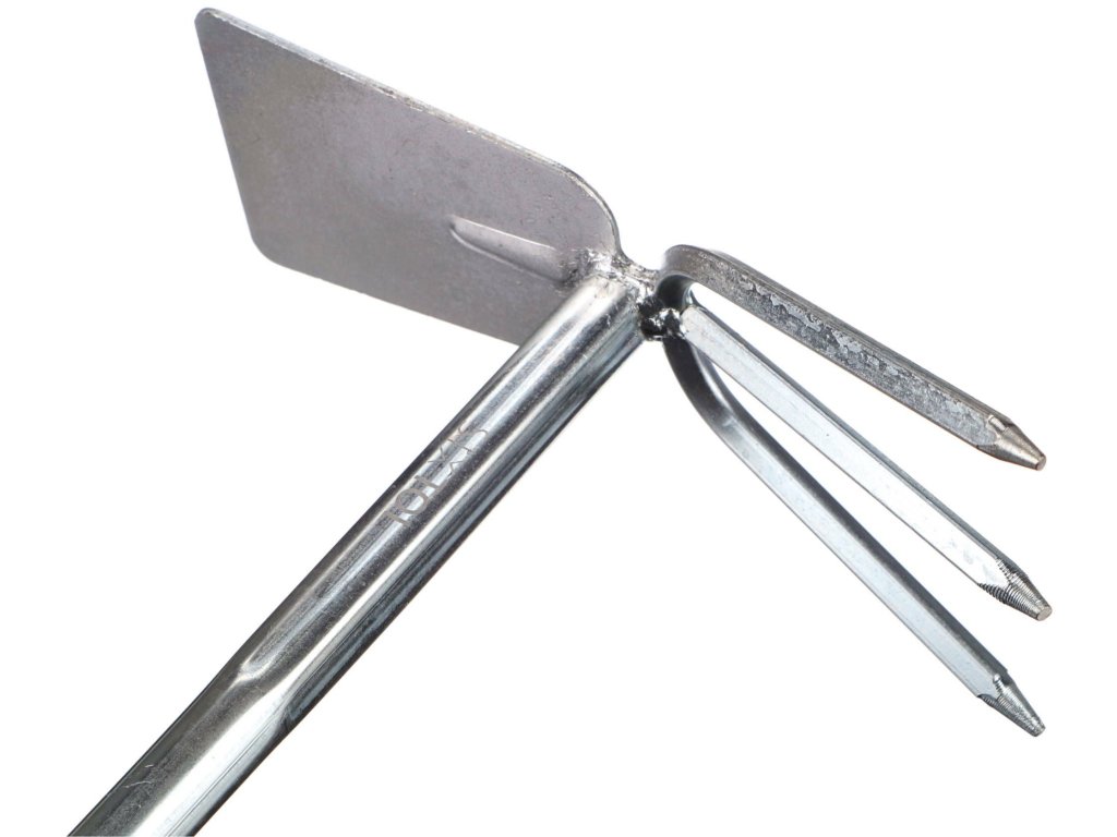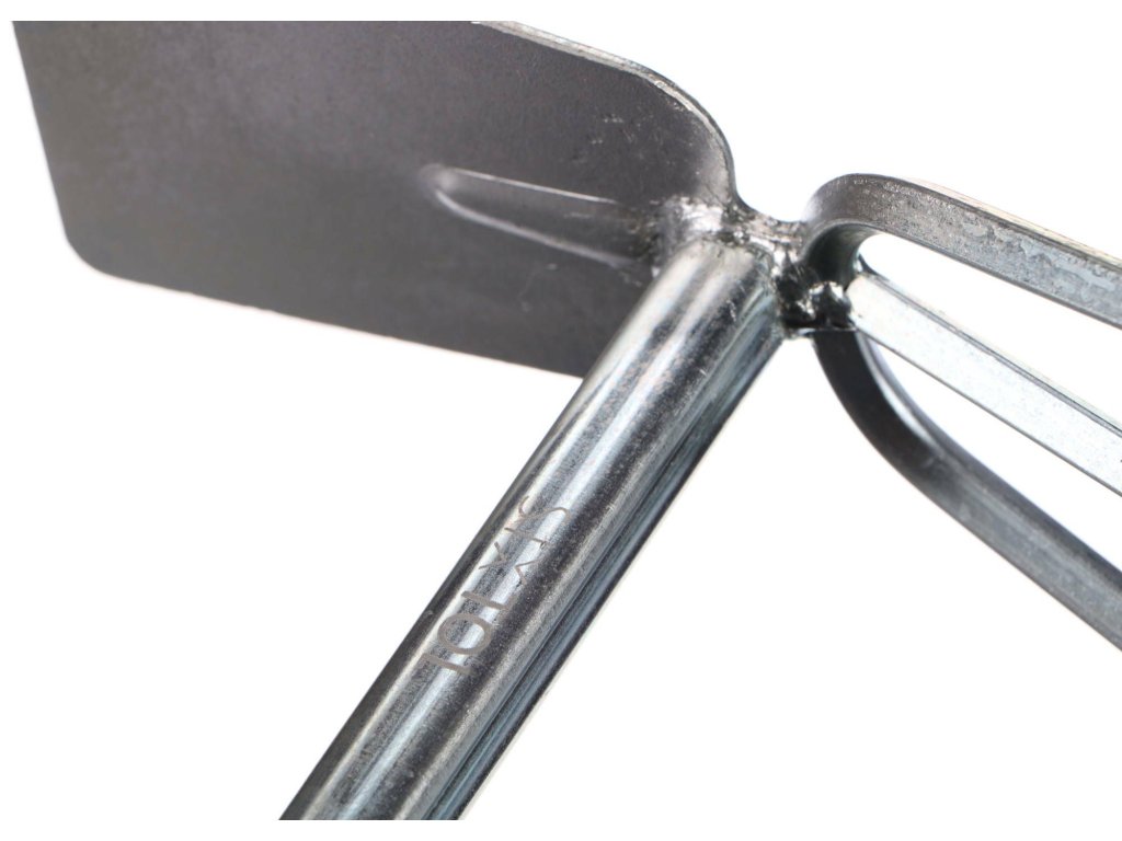 Motyka je vyrobená z robustnej ocele, takže jej nehrozí ohnutie, pozinkovaná povrchová úprava zvyšuje odolnosť proti korózii.
