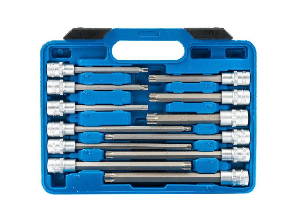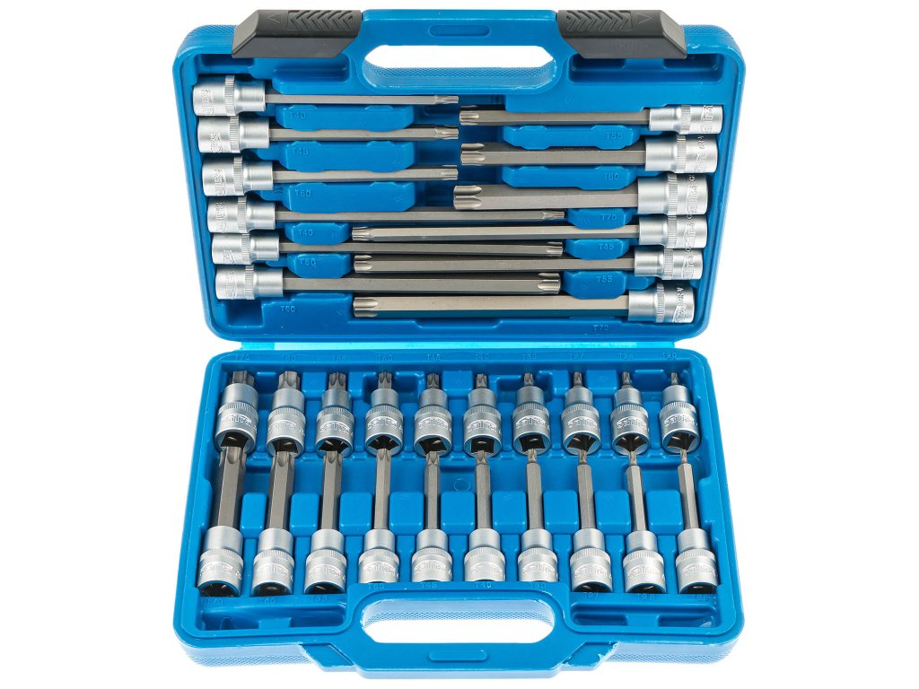 Zástrčné hlavice TORX 1/2", štandardné, predĺžené a extra dlhé, T20 - T70, sada 32 ks