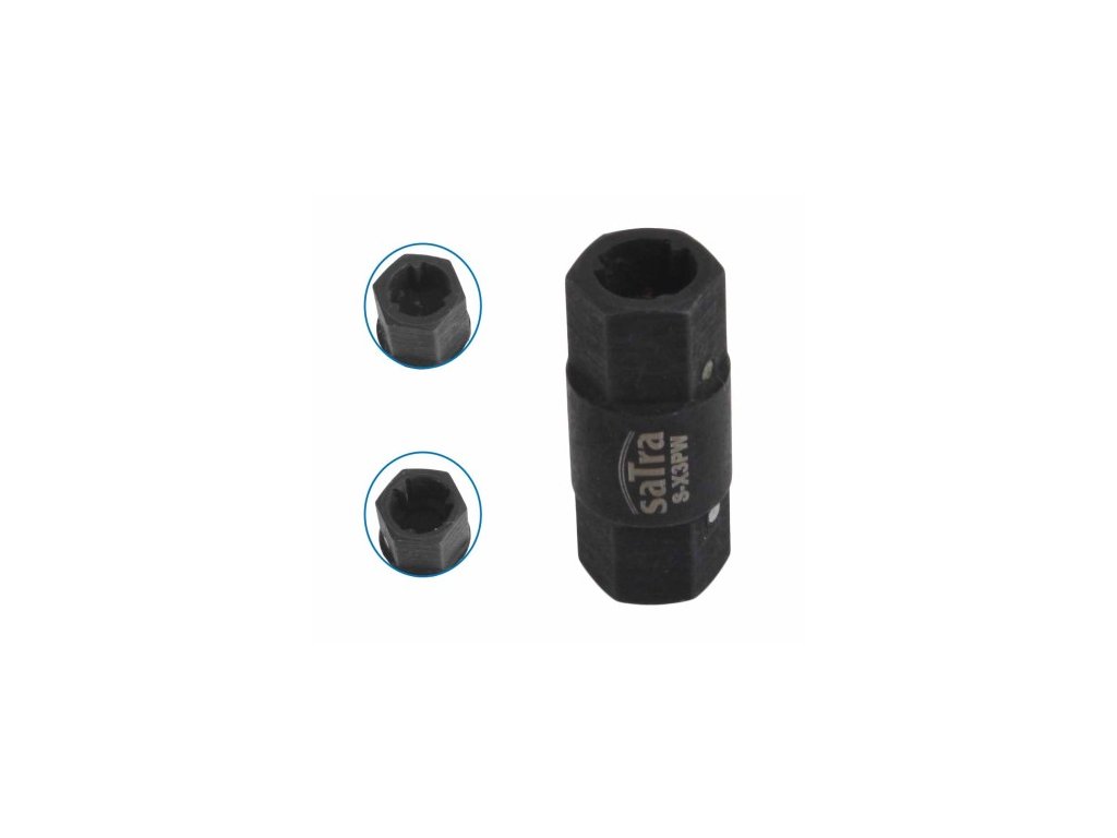 Špecializovaná obojstranná zásuvka určená na montáž a demontáž trojbodových hlavových svoriek montovaných do vozidiel Opel, Renault, Smart, PSA, Mercedes atď. - SATRA S-X3PW
