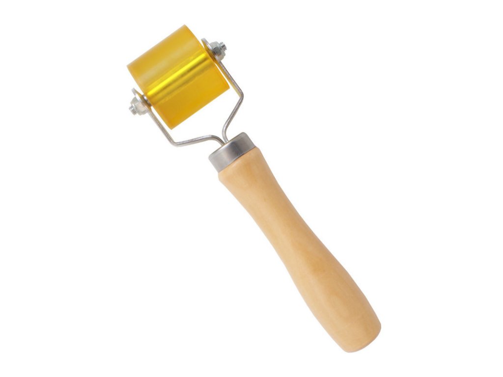Špeciálne širšie zavalovací koliesko umožňuje pritlačiť pomerne veľkú silou na nalepené samolepiace závažia. Zabráni sa tak poškodeniu závažia i disku.