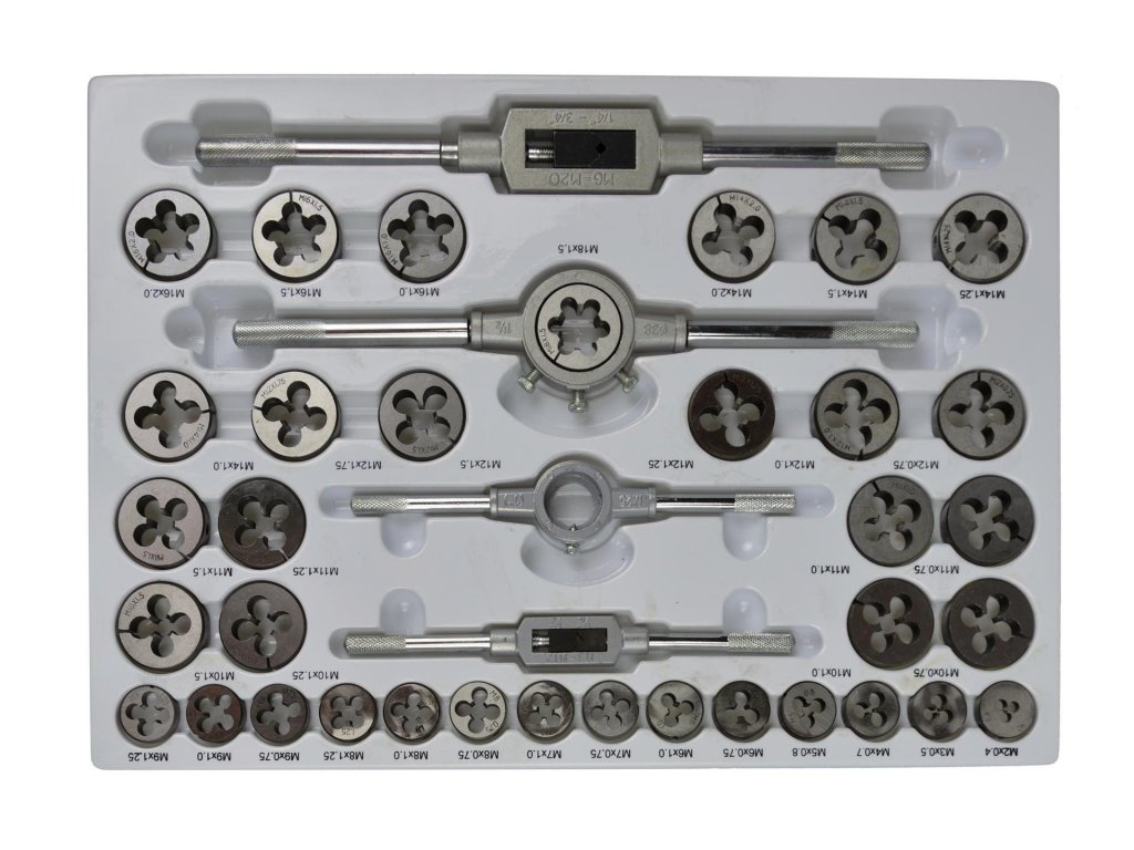 Súprava náradia na opravu (prerezanie) vonkajších i vnútorných závitov. Komplet obsahuje závitorezné nástroje a nevyhnutné príslušenstvo.