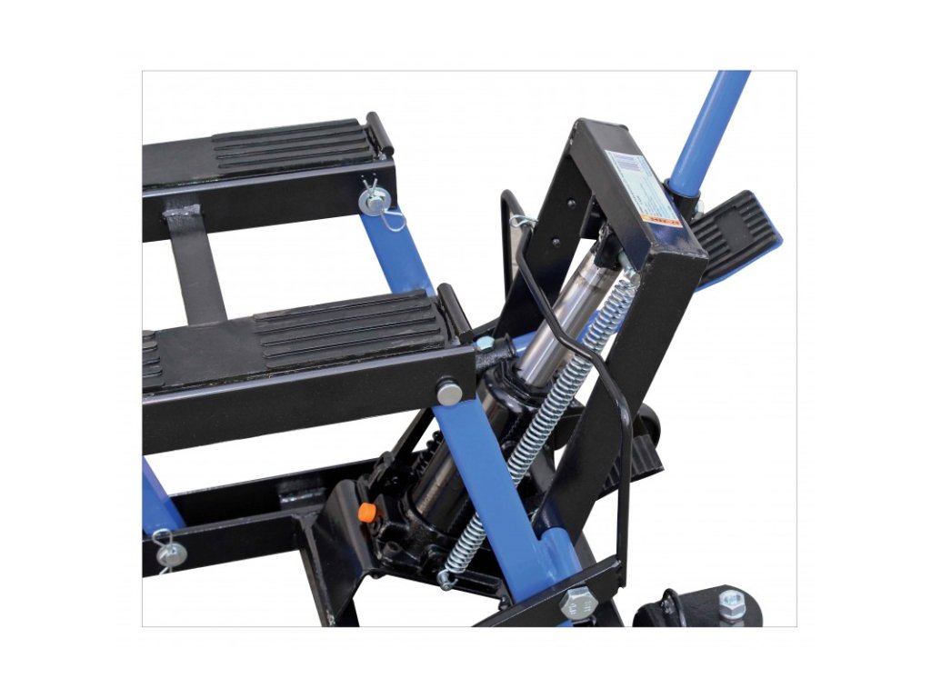 Plošina sa zdvíha a spúšťa pomocou pedálu, ktorý vyvíja tlak v hydraulickej pumpe. Nosné plochy sú opatrené gumovou ochranou proti poškodeniu motorky či jej skĺznutiu, mechanizmus je vybavený bezpečnostnými zámkami v dvoch výškach brániacich pádu v prípade zlyhania systému.