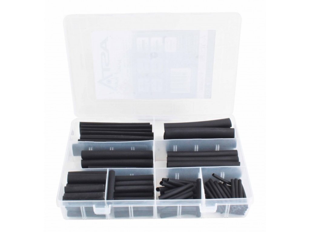 Zmršťovacie bužírky - hadičky, rôzne priemery, čierna farba, súprava 127 kusov v plastovej kazete - ASTA A-TC528