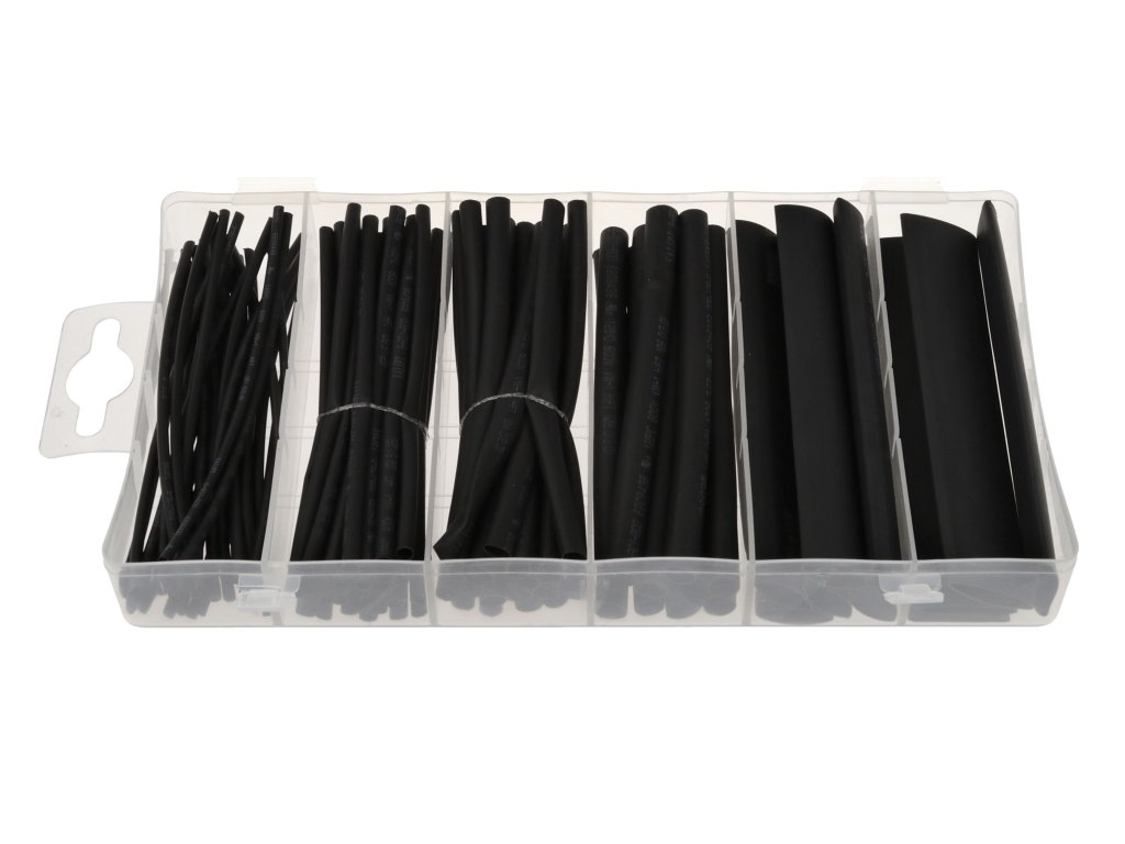Zmršťovacie hadičky - bužírky, čierne, dĺžka 100 mm, rôzne rozmery, sada 100 kusov