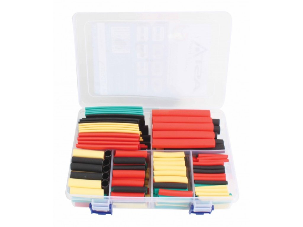 Zmršťovacie bužírky (teplem zmrštiteľné hadičky) s lepidlom vo vnútri, rôzne priemery, 15.4x76-2.4x38 mm, rôzne farby, súprava 328 kusov v plastovej kazete – ASTA A-TC530