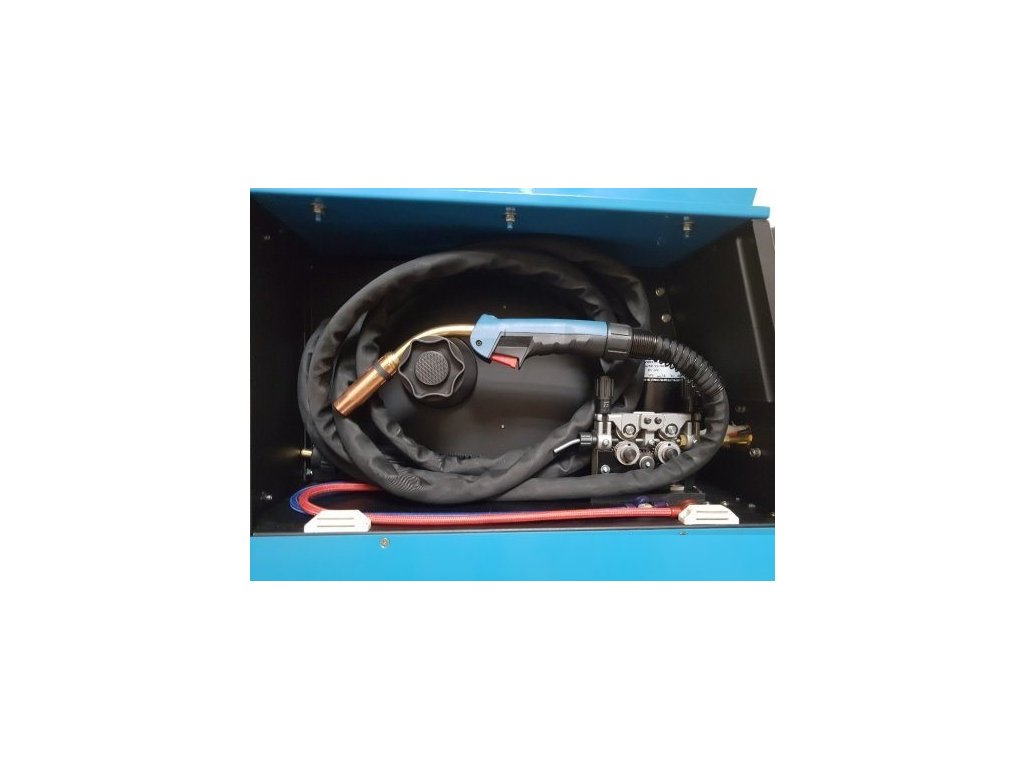 Zariadenie je vybavené nezávislou integrovanou chladiacou jednotkou a dodávané s vodou chladeným horákom. Pri zváraní MIG podporuje funkciu 2T alebo 4T. Pracuje s cievkami 200-300mm / 15 kg.
