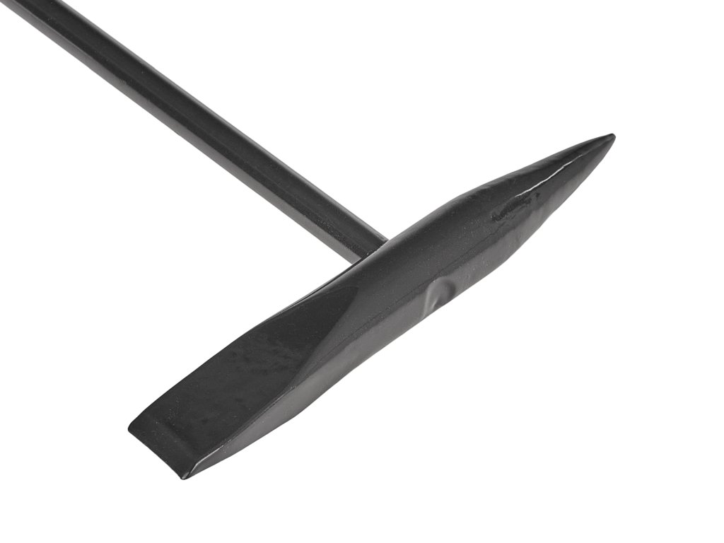 - Všestrannosť: Kladivo má dve strany: jedna je plochá, pripomínajúca dláto, ideálna na čistenie zvarov na rovných povrchoch, a druhá je s hrotom, čo umožňuje presnejšie údery.