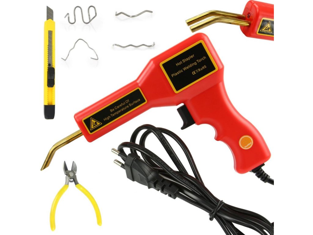 Zváračka plastov, súprava na opravu plastov, 50 W (200 zváracích sponiek), nôž, kliešte
