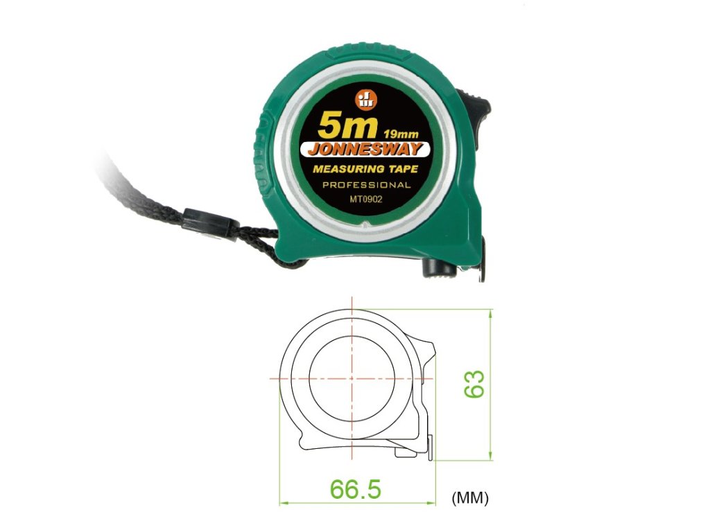 Zvinovací meter 5 mx 19 mm, obojstranná stupnica, nereflexná - JONNESWAY MT0902